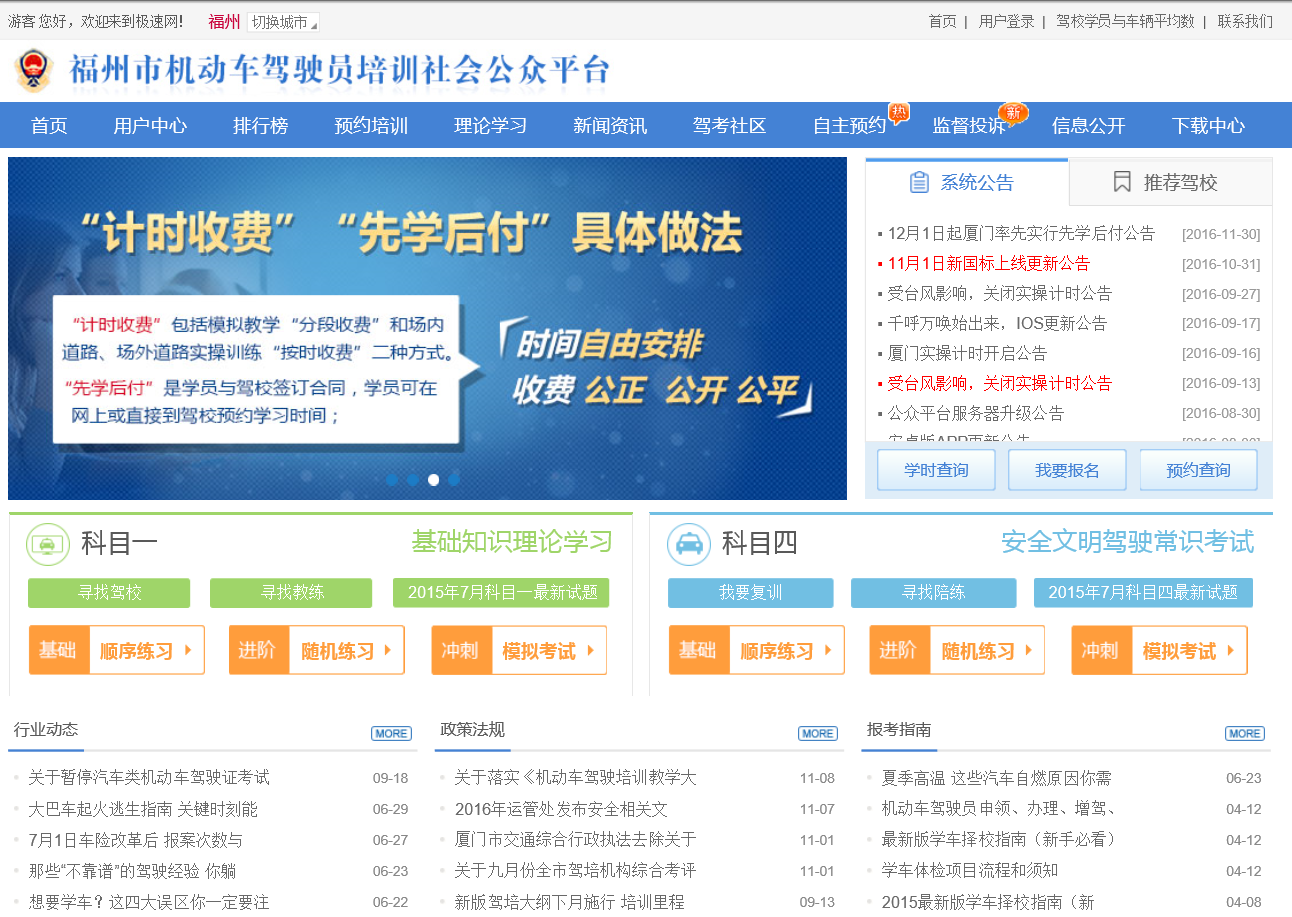 描 述:網站(zhàn)是(shì)福建省最權威的(de)駕培平台網站(zhàn),包括廈門(mén)市(shì)等9地(dì)市(shì)駕培δ,學員(yuán)可(kě)以在公衆平台進行(xíng)理(lǐ)論學習(xí),模拟考試,找駕校(xiào),找教練及找到(dào)相(xiàng)關駕校(xiào)和(hé)教練的(d¶e)評價信息等。
